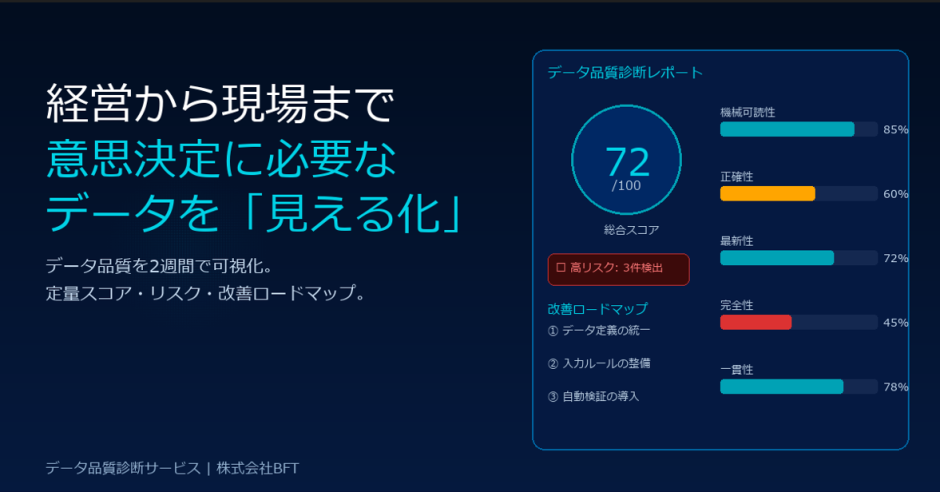 BFT、DXやAI活用で経営判断を支える“データ品質”の改善を支援する「BFT Insight」を提供開始